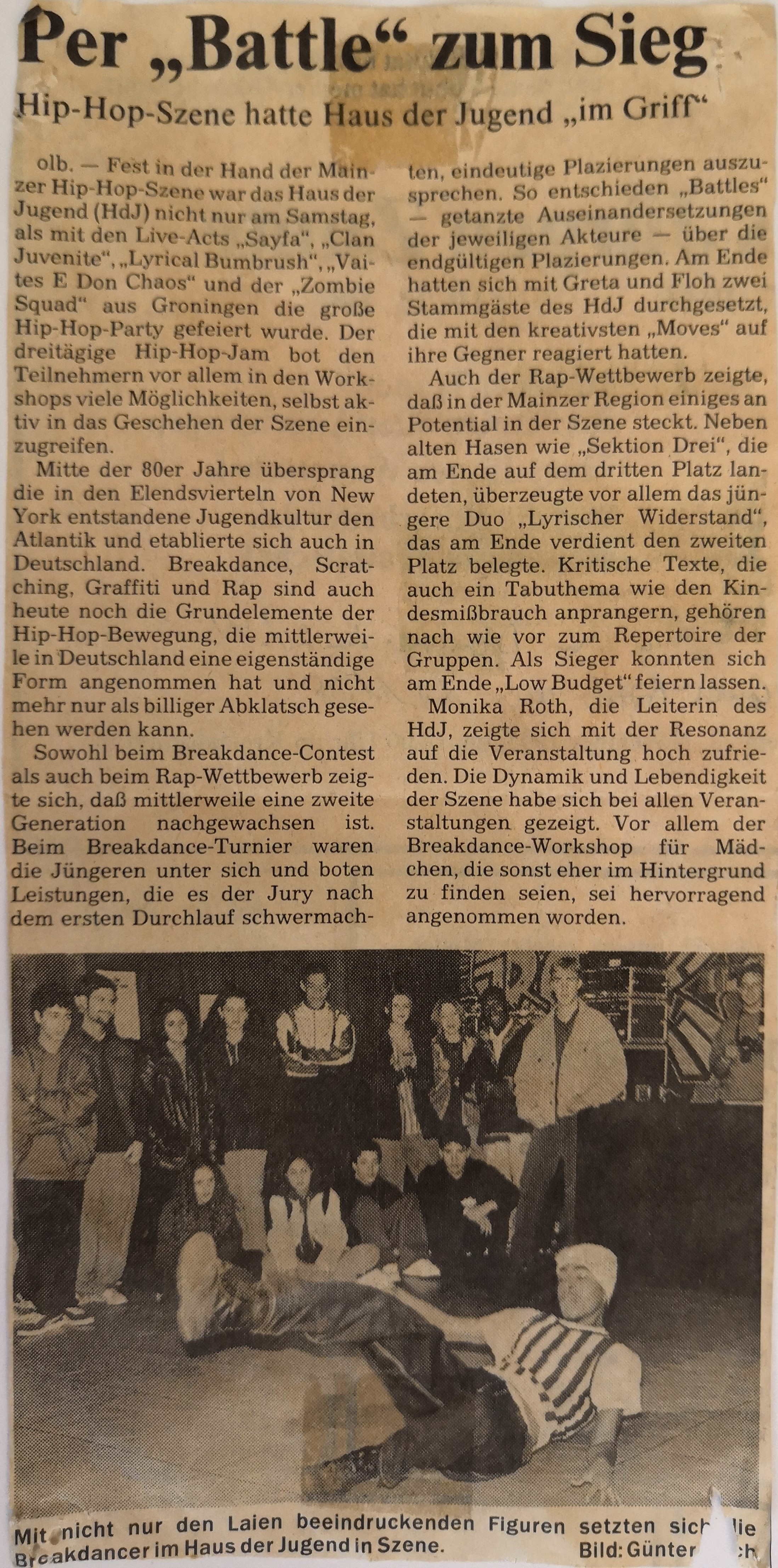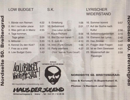 DerSamplerentstand1997aufinitiativevonÄsskahinKooperationmitdemHausderJungen Mainz.MCCromewarhieraufmitLyrischerWiderstandvertreten.DieBandsetztesichdamals ausDJJellin,MCCurl,EismannundMCCromezusammen.AußerdemwarenaufdemSampler die Gruppe „Low Budget“ und der Rapper und Produzent Ässkah vertreten.DieTrackssindzumTeiluntenaufYoutubeverlinkt.Gleichfallsfindensichweiterunten dazugehörigePresseberichteundeinInterviewbeimdamaligenMusiksenderVivainder Sendung Wordcup.
